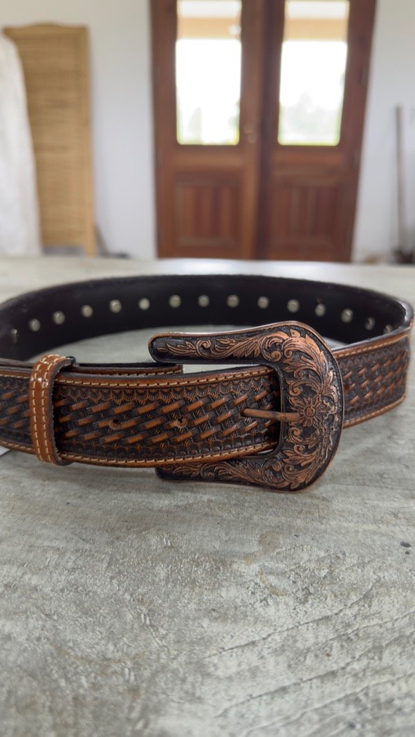 como muestran las imágenes, se mide desde donde empieza el cinturón (la parte del cuero, no la hebilla), hasta el agujero del medio (el cinturón tiene 5 agujeros y se mide al del medio para que puedas ajustar o aflojar más)